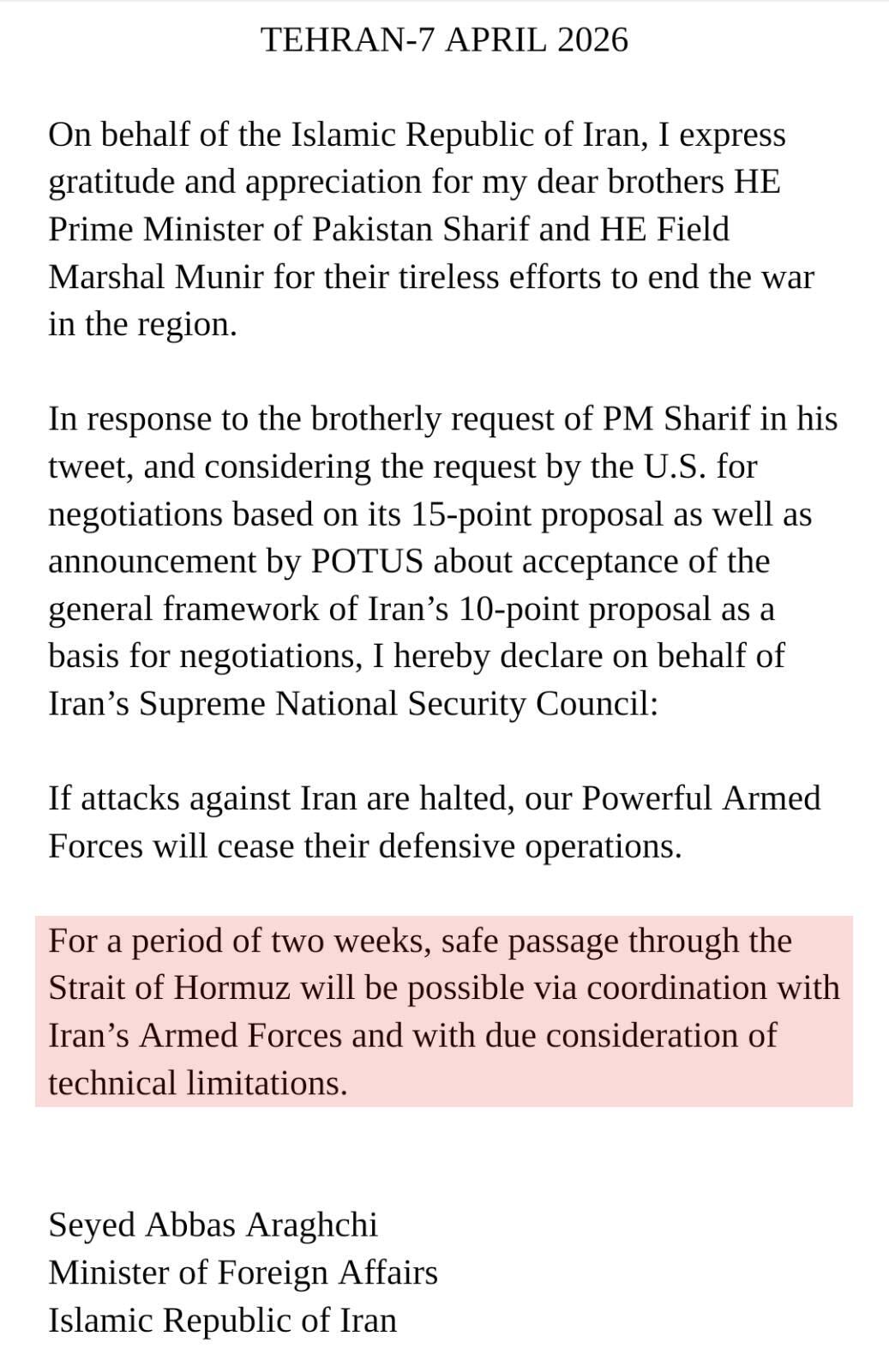 - Iran’s ambassador to Pakistan stated the delegation will arrive in Islamabad on Thursday night for “serious talks” based on Iran’s 10-point proposal.