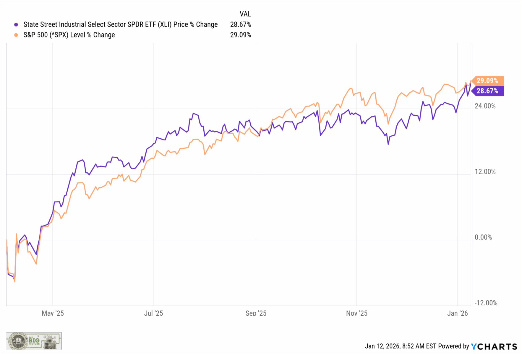 The other question for investors is exactly how much of the tariff repeal is already reflected in market prices. It’s always difficult to assess what is in the collective minds of traders, but consider that since the April 2nd tariff announcements (markets since April 3rd), the S&P 500 and the Industrial sector are up about the same — 29.1% vs 28.7%. However, since the November 5th argument at the Supreme Court, the S&P500 is up 2.4%, while the SPX manufacturing sector is up more than double that at 5.7%.
