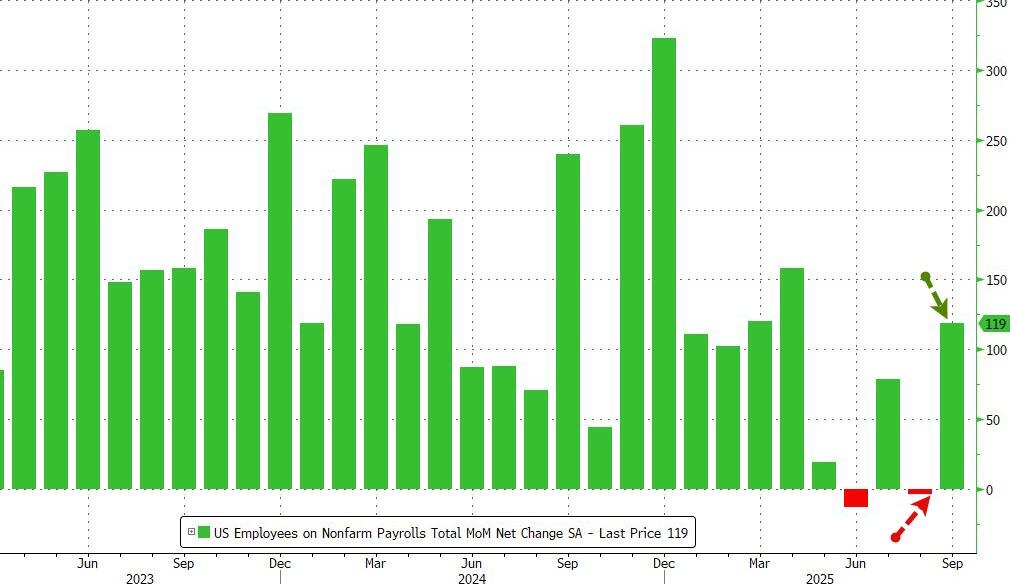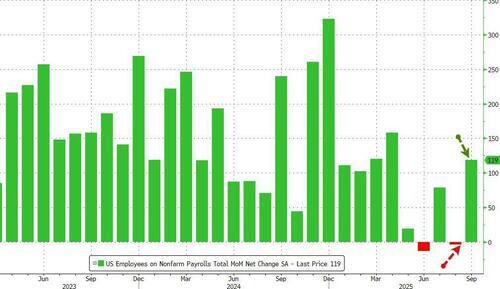 - 8:30 am: Sep Change in Nonfarm Payrolls, est. 51k, prior 22k