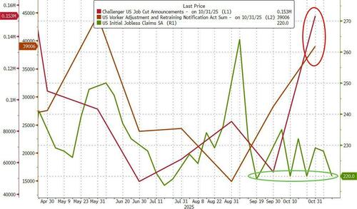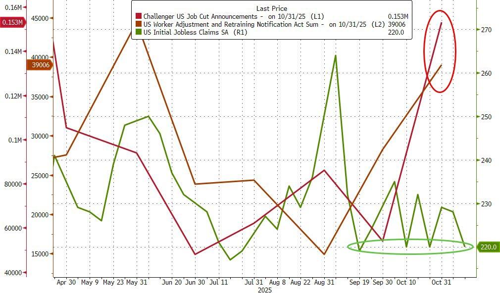 Outside of tech, things aren’t quite so cheerful. The much-delayed September payrolls report is due to be published later, and it’ll be the only official major jobs data published before Fed policymakers meet in December. Odds of a rate cut have steadily slipped in recent weeks, with the market now seeing about a 25% probability of a reduction.