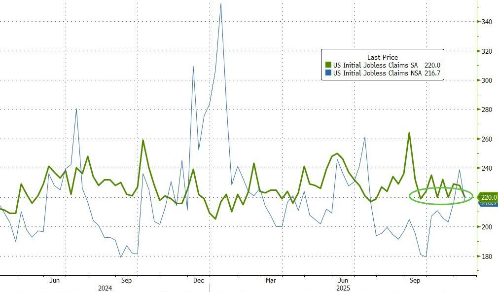 The US economic calendar also includes weekly jobless claims, November Philadelphia Fed business outlook (8:30am), October existing home sales (10am) and November Kansas City Fed manufacturing activity (11am). Fed speaker slate includes Hammack (8:45am), Barr (9:30am), Cook (11am), Goolsbee (12:40pm and 6pm), Miran (6:15pm) and Paulson (6:45pm)