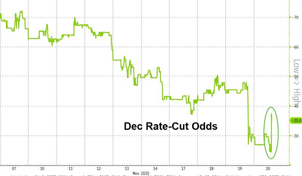 Yesterday’s equity gains were relatively narrow, with more than 60% of the S&P 500 constituents losing ground. Despite the S&P trading up just over a percent in the first hour of trading, we saw the index briefly dip into negative territory after news broke just after Europe closed that there now wouldn't be an October payrolls report and that the November report wouldn't be released until December 16th which is 9 days after the FOMC decision. So this reduces the data availability for the Fed before the meeting and thus makes a hold more likely. Indeed futures contracts showed that the probability of a December cut spiked lower from 47% to 27% within minutes of the BLS announcement, a huge move outside of data or speeches. It closed at 29%.