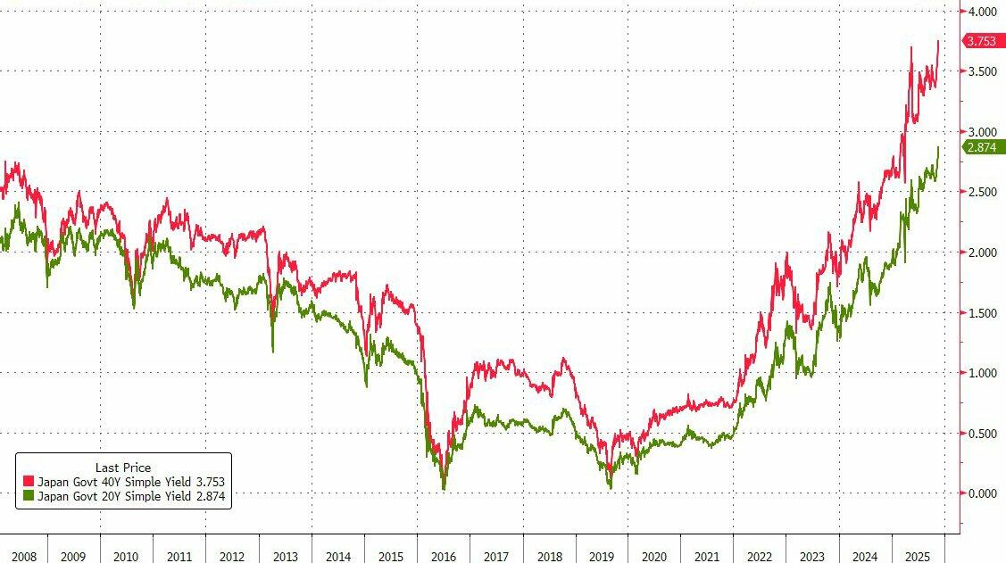 Overnight, Junko Koeda, a board member of the BOJ, has provided one of the most explicit hawkish indications from the central bank in recent months, suggesting the potential for a rate increase as early as next month. This is in response to the yen reaching its lowest value in 10 months. However the Yen hasn't moved much and JGBs continue their recent yield march higher ahead of the arrival of the details of PM Takaichi's stimulus package on Friday. 30-year JGBs have increased by +3.7bps, trading at a record high this morning. Similarly, 20-year JGBs have risen by +4.0bps, and at the highest level since 1999, while 10-year JGBs have climbed by +4.8bps to 1.81%, the highest level since 2008. So interesting times for Japan.