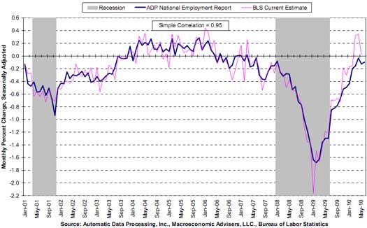 The June 2010 ADP private employment report is out with a paltry 13,000 job increase. The ADP reports on private sector jobs, no government, or federal jobs are counted. The ADP reports excludes temporary Census jobs, which are government jobs.
