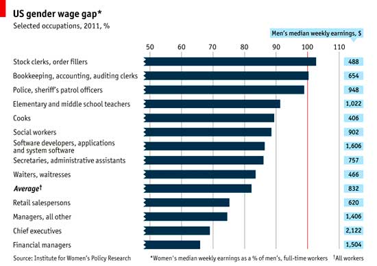 Generally speaking economic injustice for women is alive and well and one of the main ways this is achieved is occupational segregation. This is known as the glass ceiling. Yet if females manage to even get the job typically assumed to be a male domain as we see above, they are still being paid less.