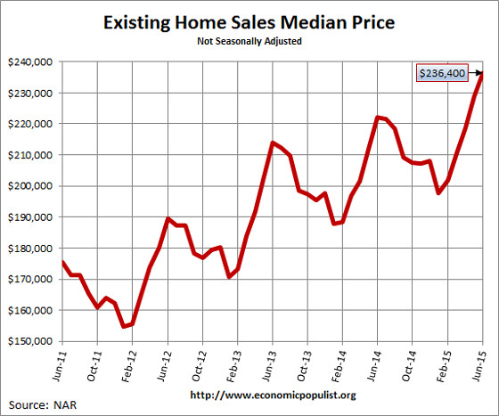 June existing-home sales in the Northeast climbed 4.3 percent to an annual rate of 720,000, and are now 12.5 percent above a year ago. The median price in the Northeast was $281,200, which is 3.9 percent higher than June 2014.